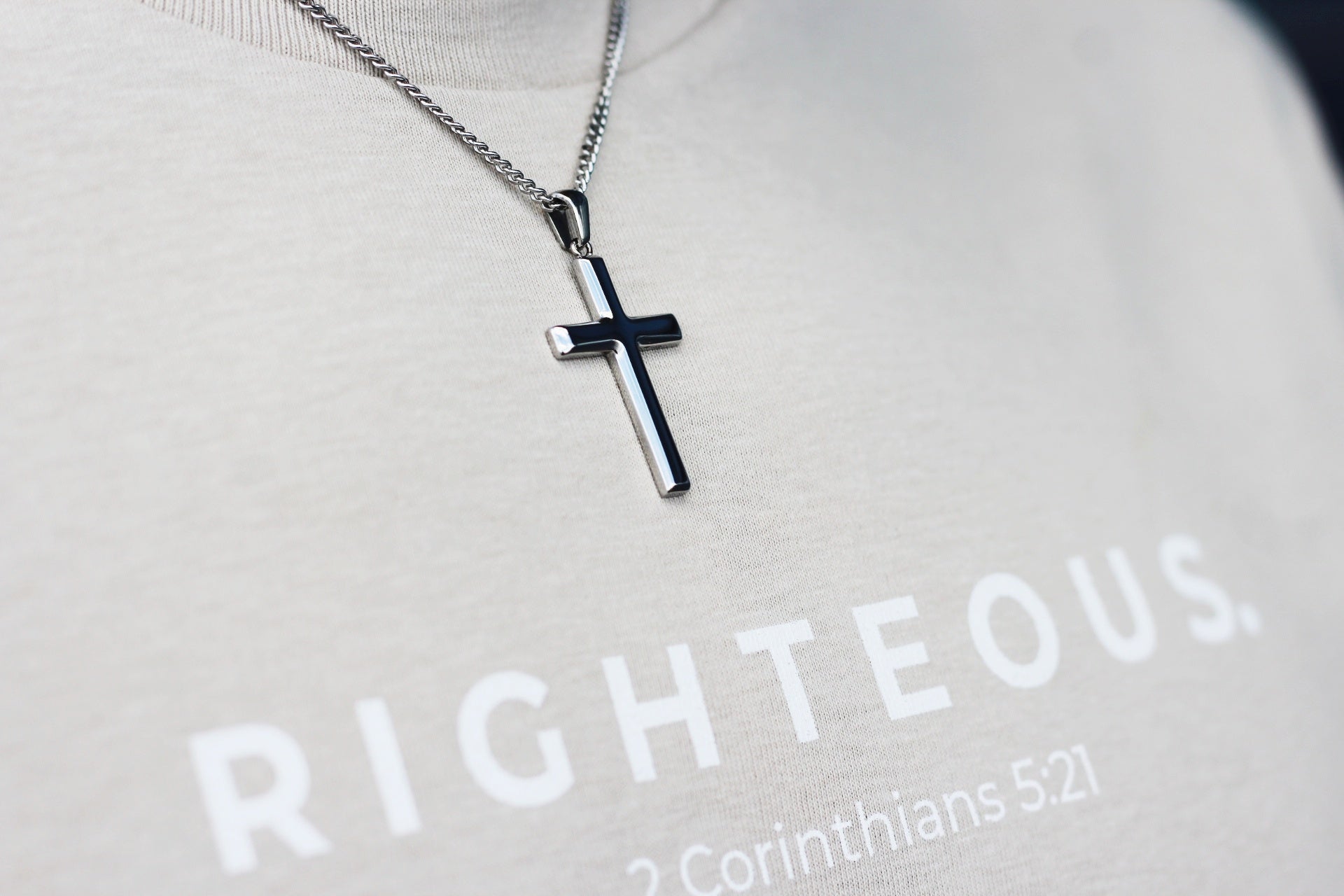 The "Righteous" T Shirt is designed to remind you have been made right with God through faith in Christ.